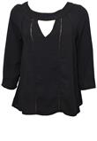 Possui gola redonda com recorte no busto e entremeios em guipir.Ombro: 3cm/ Manga: 45cm/ Busto: 100cm/ Comprimento: 59cm