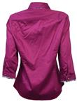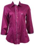 Possui manga 3/4 e detalhes de estampa na gola, botões e punho