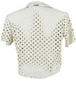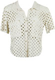 Possui bolsos, fecho por botões e recortes a laser. Não possui forro. Ombro: 13cm/ Manga: 24cm/ Busto: 100cm/ Comprimento: 50cm
