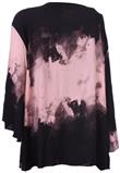 Possui tecido amplo e fluído e detalhes em tie dye bege