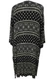 Possui fendas mangas 3/4, laterais e não possui fecho.Ombro: 22cm/ Manga: 37cm/ Busto: 130cm/ Comprimento: 116cm