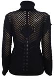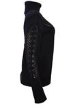Possui gola rolê e tira em couro sintético trançada.Ombro: 13cm/ Manga: 65cm/ Busto: 108cm/ Comprimento: 68cm