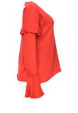 Possui deconte redondo e detalhe em babado nas mangas. Ombro: 20cm/ Manga: 54cm/ Busto: 120cm/ Comprimento: 62cm