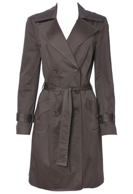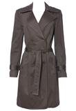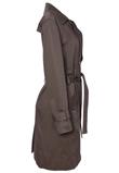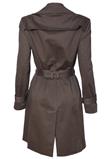 Possui fechamento em botão , cinto para amarração e bolso.