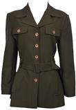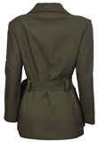 Possui fechamento em botão e amarração na cintura