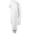 Fecho frontal em zíper e velcro, possui bolso e capuz regulável.