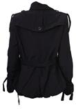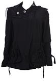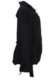 Possui regulador na cintura, bolsos e ferragens pretas e pratas.