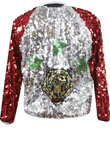 Jaqueta Bomber Doka Paetês Tigre Prata/Vermelha