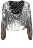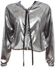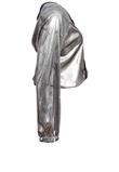 Possui capuz, fecho em zíper e elástico na barra. Confeccionada em tecido metalizado levemente transparente.Manga: 68cm/ Busto: 120cm/ Comprimento: 62cm