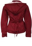 Possui fecho em zíper e botões. Possui gorro. Possui bolsos.