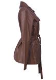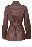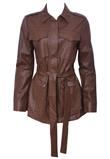 Possui fechamento em zíper, bolsos e fita para amarração.