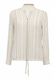 Possui estampa escrita abstrata, fechamento em zíper e ferragens douradas