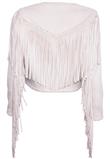 Possui acabamento em suede e franjas. Ombro: 12cm/ Manga: 59cm/ Busto: 106cm/ Comprimento: 48cm