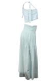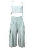 Conjunto composto por cropped e calça. Calça possui fechamento em zíper e Cropped possui amarração na alça e fechamento em zíper.