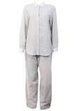 Conjunto composto por camisa e calça. Calça possui cós elástico. Camisa possui fechamento em zíper e botão.