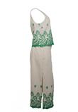 Conjunto Cor Doce Linho Bordado Bege/Verde
