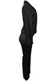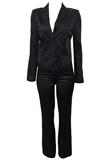 Conjunto composto por blazer com ombreiras, bolsos e fecho em botão e calça com modelagem reta, fecho em botão e zíper. Blazer: Ombro: 12cm/ Manga: 60cm/ Busto: 100cm/ Comprimento: 50cm Calça: Cintura: 76cm/ Quadril: 90cm/ Gancho: 27cm/ Comprimento: 105cm