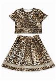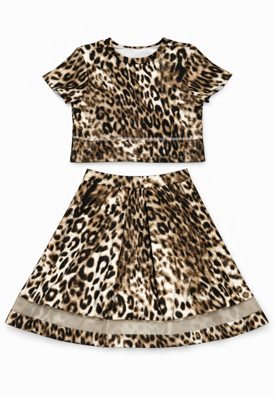Conjunto composto por blusa e saia, Saia possui detalhe em tule. Blusa modelo cropped