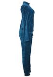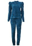 Conjunto composto por blusa e calça. Calça possui bolsos. Blusa possui gola alta.