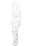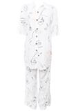 Conjunto composto por camisa com modelagem ampla e alongada, fecho em botões e calça pantalona com bolsos frontais, pregas, fecho em botão e zíper. Ambas possuem estampa de rostos.Camisa: Ombro:13cm/ Manga: 31cm/ Busto: 99cm/ Comprimento: 81cm Calça: Cintura: 66cm/ Quadril: 120cm/ Gancho: 36cm/ Comprimento: 110cm