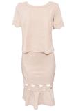 Conjunto possui blusa e saia. Blusa possui decote redondo e detalhe em recortes. Saia lápis com detalhe em recortes.Blusa: Ombro: 9cm/ Manga: 23cm/ Busto: 102cm/ Comprimento: 50cm/ Saia: Cintura: 74cm/ Quadril: 92cm/ Comprimento: 67cm