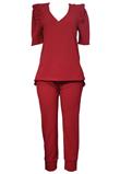 Conjunto composto por blusa e calça. Calça possui cós elásticoe cordão para amarração.Blusa possui com babado na manga.