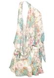 Conjunto composto por saia e blusa. Blusa possui detalhe em amarração e saia possui fechamento em zíper.