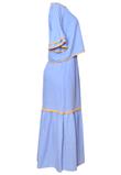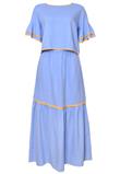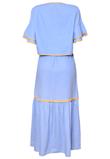 Conjunto composto por saia e blusa. Saia possui cós elástico. Blusa possui manga com babado.
