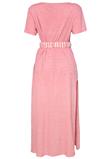 Conjunto composto por Vestido, short e cinto. Vestido possui fenda nas laterais. Short possui cós elástico. Cinto possui fechamento em botão.