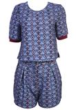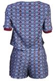 Conjunto composto por blusa e short. Short possui cós alto, fechamento em botão e zíper.