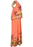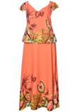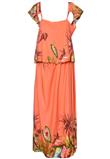 Conjunto composto por saia longa e regata. Regata possui alça com regulagem e detalhe em babado. Saia possui fenda. Regata: Ombro: 17cm/ Busto: 120cm/ Comprimento: 75cm Saia: Cintura: 100cm/ Quadril: 150cm/ Comprimento:120cm