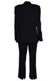 Possui mangas longas com detalhe de botões em ambos punhos, ombros estruturados e fecho por botões.