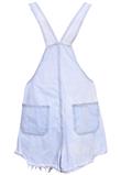 Possui lavagem clara e desfiados na barra. Fechamento em botões