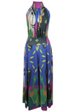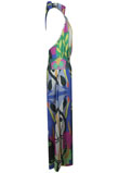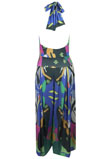 Possui decote frente única com ajuste em amarração, ajuste em elástico na cintura e estampa abstrata.