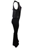 Possui gola redonda, recortes em PU, manga em sobreposição, fecho frontal e posterior em zíper.Ombro: 5cm/ Busto: 88cm/ CinturaÇ 68cm/ Quadril: 100cm/ Gancho: 26cm/ Comprimento: 162cm