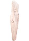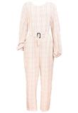 Possui elástico na cintura e manga longa.