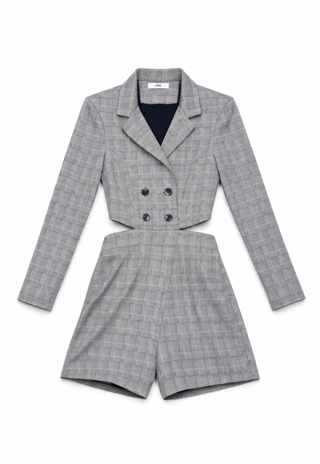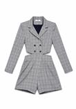Macaquinho Dot Pied De Poule Cinza
