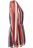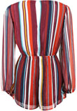 Possui decote V, ajuste em elástico na cintura e padronagem listrada com acabamento em lurex.