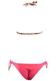 Possui parte de cima estampada com bojo e parte de baixo lisa com amarração nas laterais