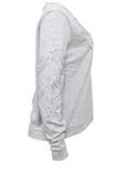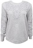 Possui gola redonda, acabamento não flanelado e bordados com aplicações peroladas.Ombro: 13cm/ Manga: 62cm/ Busto: 118cm/ Comprimento: 60cm