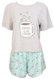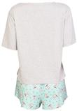 Pijama composto por blusa e short. Short possui cós elástico. Blusa decote redondo.