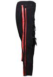 Possui fechamento por zíper e botão e cinco bolsos. Possui detalhe em faixa vermelha lateral. Cintura: 120cm/ Quadril: 124cm/ Gancho: 39cm/ Comprimento: 102cm