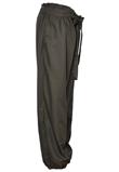 Possui cós elástico e fita para amarração na cintura. Cintura: 110cm/ Quadril: 148cm/ Gancho: 42cm/ Comprimento: 108cm