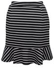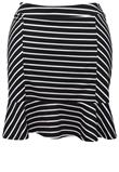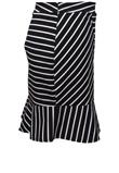 Saia listrada com recortes. Cintura: 106cm/ Quadril: 132cm/ Comprimento: 56cm