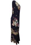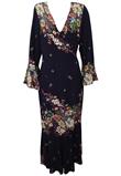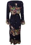 Vestido transpassado e fechamento por amarração. Ombro: 11cm/ Manga: 60cm/ Busto: 130cm/ Comprimento: 143cm