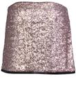 Possui fechamento em zíper e confeccionada em tecido com paetê