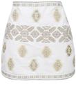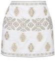 Com bordados e aplicações em predras. Possui fechamento lateral por zíper e colchete.