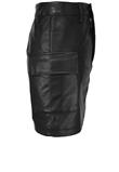 Possui acabamento resinado, fecho em zíper e colchete e bolsos laterais.