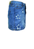 Fecho em botão e zíper, possui bolso, bordado de estrela.