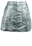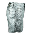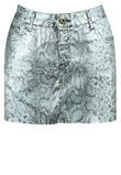 Possui bolsos, fecho por botão e zíper. Acabamento metalizado com animal print snake. Cintura: 86cm/ Quadril: 98cm/ Comprimento: 36cm
